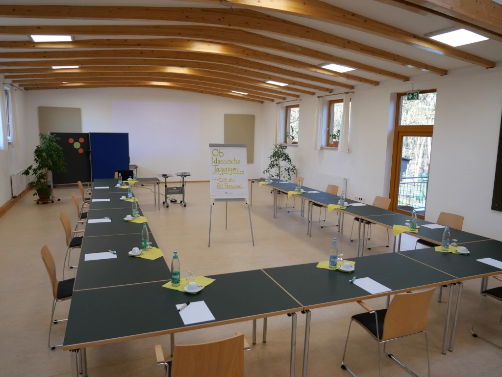Der Tagungsraum „forum“ umfasst ca. 70 m2 und befindet sich im Ökozentrum. Als Teil des Übernachtungsbereichs kann der schöne, helle Raum von Seminargruppen, als Aufenthaltsraum oder zum Tagen genutzt werden.