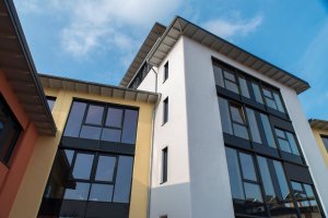 Das Gebäude bietet Büroräume unter anderem für Planungsbüros, Fachverbände und andere Akteure im Bereich Nachhaltiges Bauen.